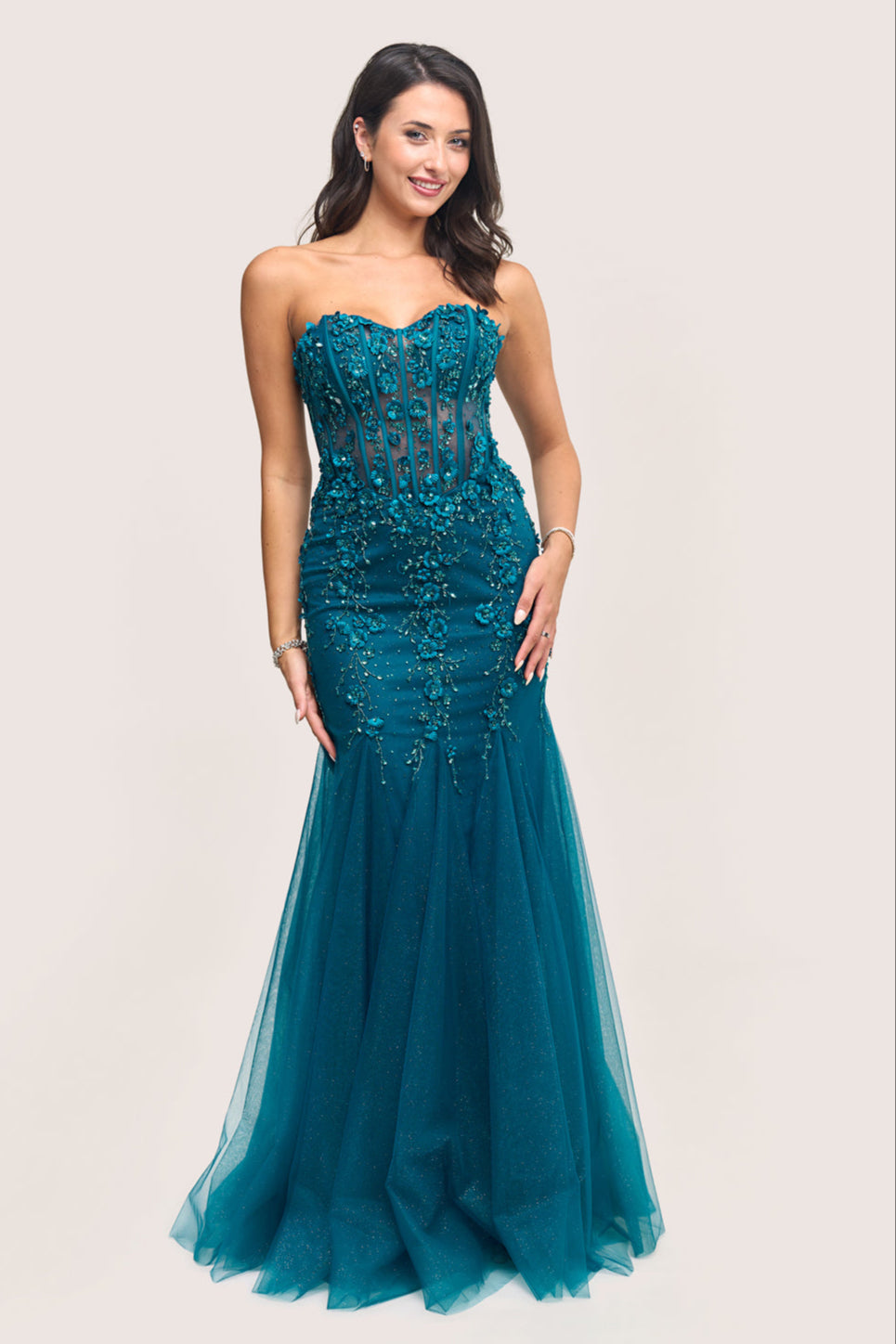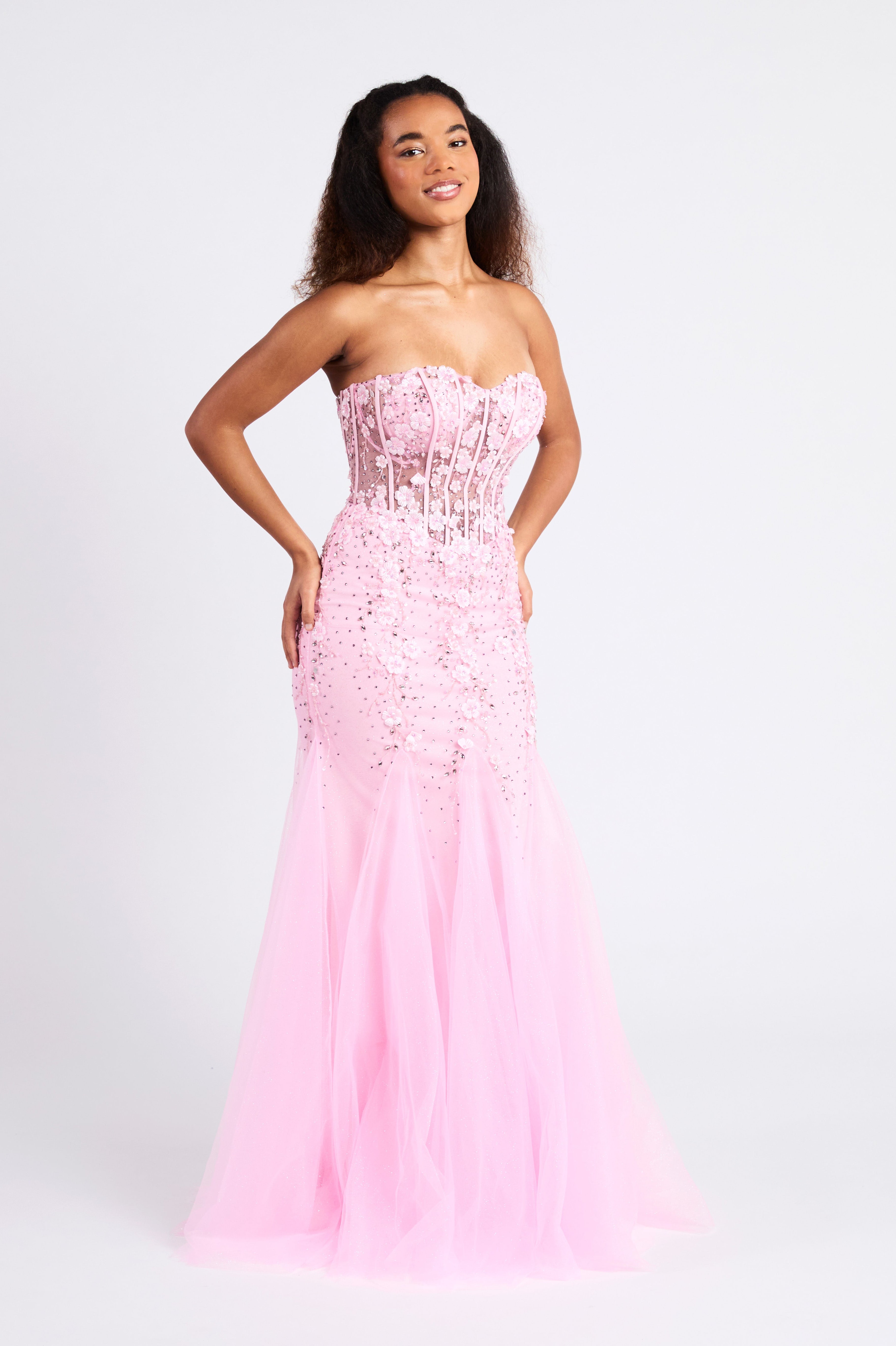 Available in pink and teal, Calypso offers two striking colour options—soft and romantic or bold and vibrant. Each shade complements the gown’s refined structure, creating a polished and high-impact finish perfect for prom photos, entrances and the dance floor.