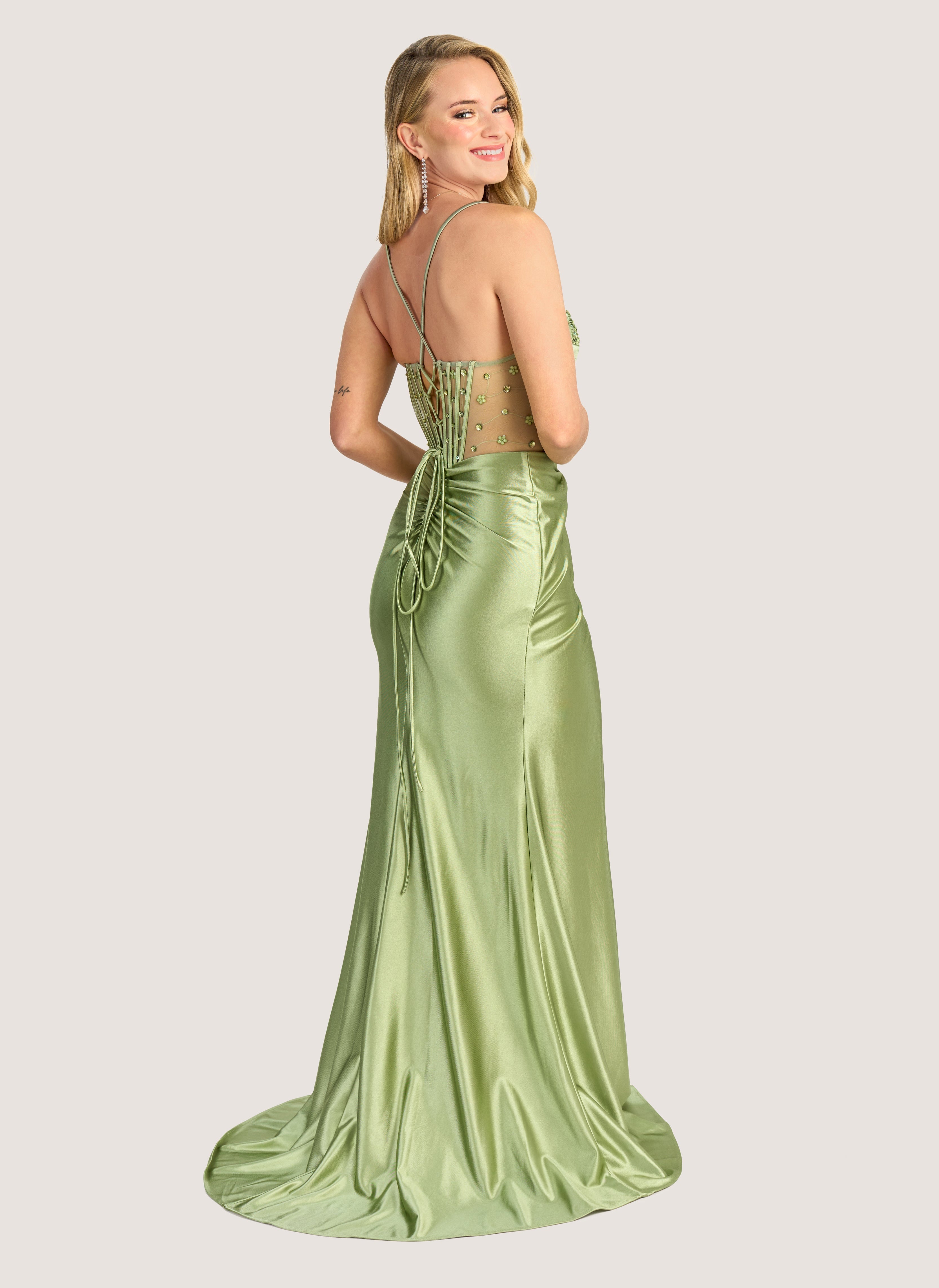 The Milan combines luxurious satin fabric with a structured corset top, expertly designed to enhance your silhouette. Elegant embellishments add refined detail, while a sleek slit introduces a subtle yet captivating touch of allure. This piece blends timeless sophistication with modern flair, ideal for occasions that demand both style and poise.